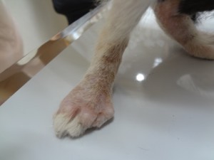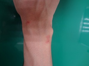 実はこれ院長の手です(T_T) どの子からか、もらってしまいました。皮膚が弱いこともあって、今回でこの仕事をして3回目です・・・人が感染すると結構かゆいです(経験談)