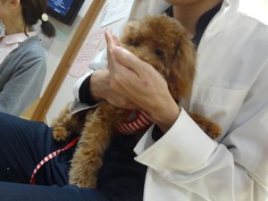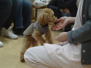 今回は前回と内容は同じで、①体を触る練習②音に慣れる練習③他のわんちゃんに慣れる練習
