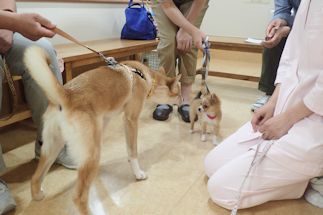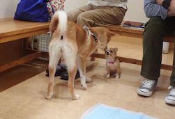 さてさて、私が一番楽しみにしていた時間!!他のわんちゃんに慣れてもらう練習の様子です(*ノωノ)💕