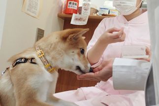 あくびちゃんは病院に来ること自体が初めてなので、まだ少し緊張しています💦