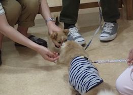 物に慣れる練習では爪切りとブラシを使って練習してもらいました。