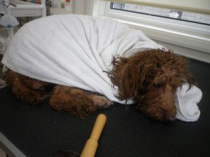 その後のドライングもタオルに包まれたままジーッとお利口さんなラムちゃん。
