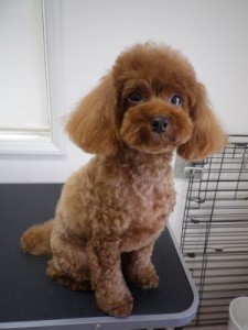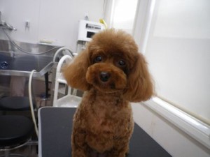 トリミングテーブルの上でも名前を呼ぶと反対を向いててもすぐ近くまで来てくれるラブちゃん。