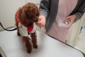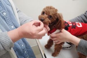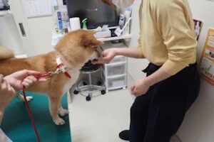 まずは、大好きなおやつをモグモグしてもらっている間に口周りを触っていきます。お利口さんです😊