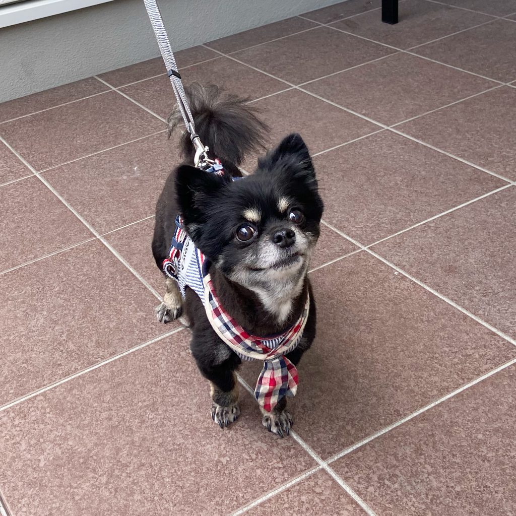外ではこのように元気な顔で待っているんですが、診察台の上では終始怯えているタイプの犬です😅