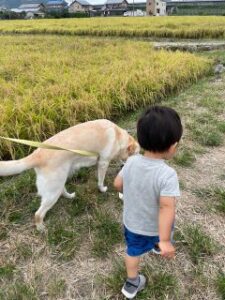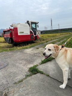 乗り物が大好きな息子はお米を収穫しているコンバインを見て大興奮!!