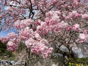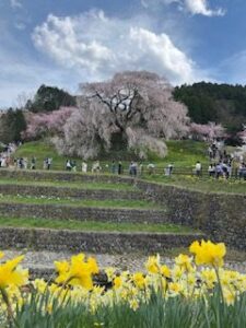奈良県の又兵衛桜です🌸すいせんと桜のコラボ🏵️