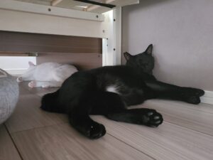 ですが、最近は流石に暑いのかベッドの下やエアコンがあたる涼しそうな場所で離れてくつろぐことが多くなってきました😺😺