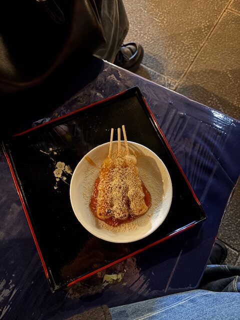 中で梅昆布茶とお菓子のサービスがあってライトアップを見ながらゆっくりしました🍵